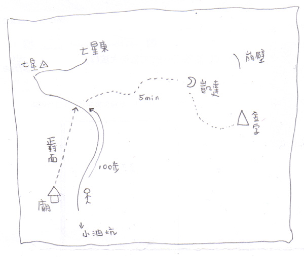 從小油坑往七星山步道登山口進入,一路往上走,在接近七星山主峰的山腳下,步道左手邊有一座土地公廟。