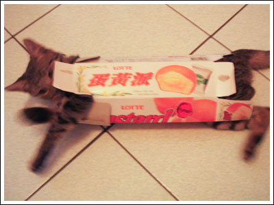 他玩得很瘋,不停的把頭鑽進紙盒口,就被我把全身套進去拍了這張。